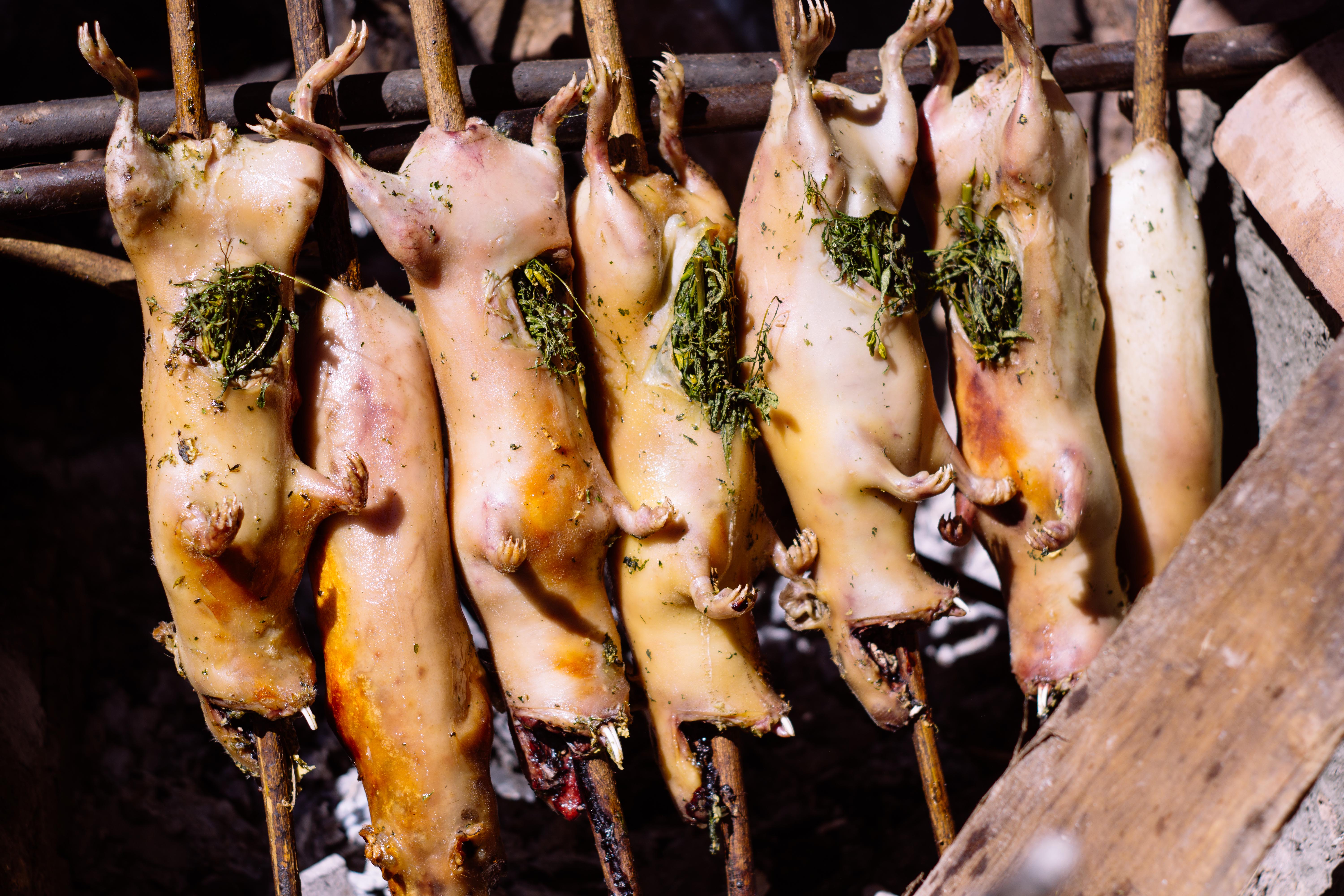 A traditional and common protein in Peru, this photo shows the preparation of the guinea pig in the Sacred Valley.